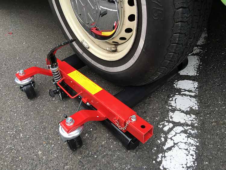 狭い会場への搬入や撮影時に車両位置の微調整が想定される場合には油圧の力でタイヤを持ち上げて移動できるツール「ゴージャッキ」が便利です。