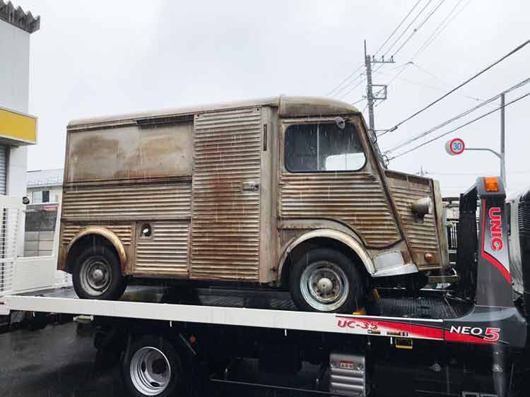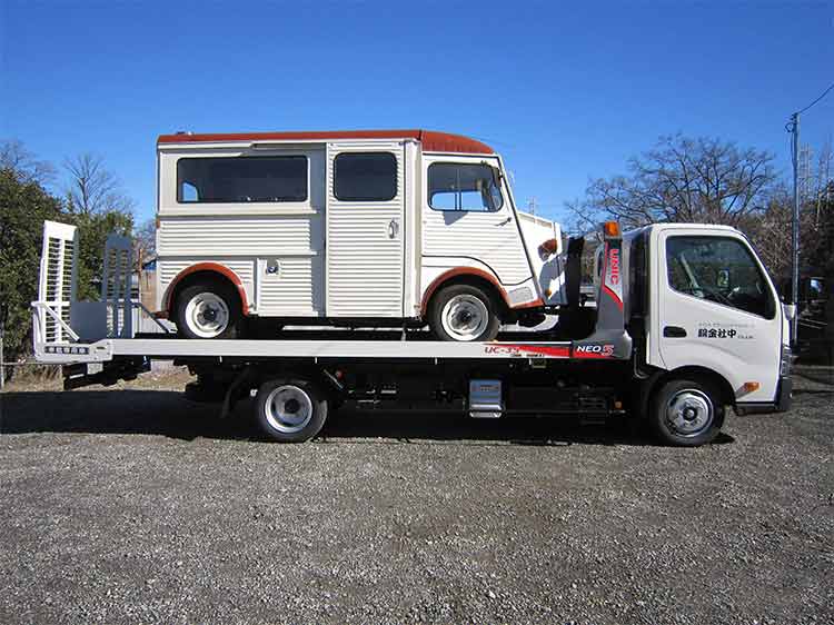 ワーゲンやシトロエンなどの長距離自走が難しいクラシックカーでもローダー車なら日本全国どこへでも、撮影地まで安全に車両を運搬出来ます。