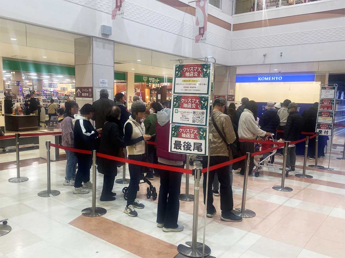 何処もクリスマス商戦の中、お買物レシート合計で抽選会に参加して頂き、豪華なプレゼントをGET出来るワクワクなイベントに沢山のお客様で賑わっていました♪