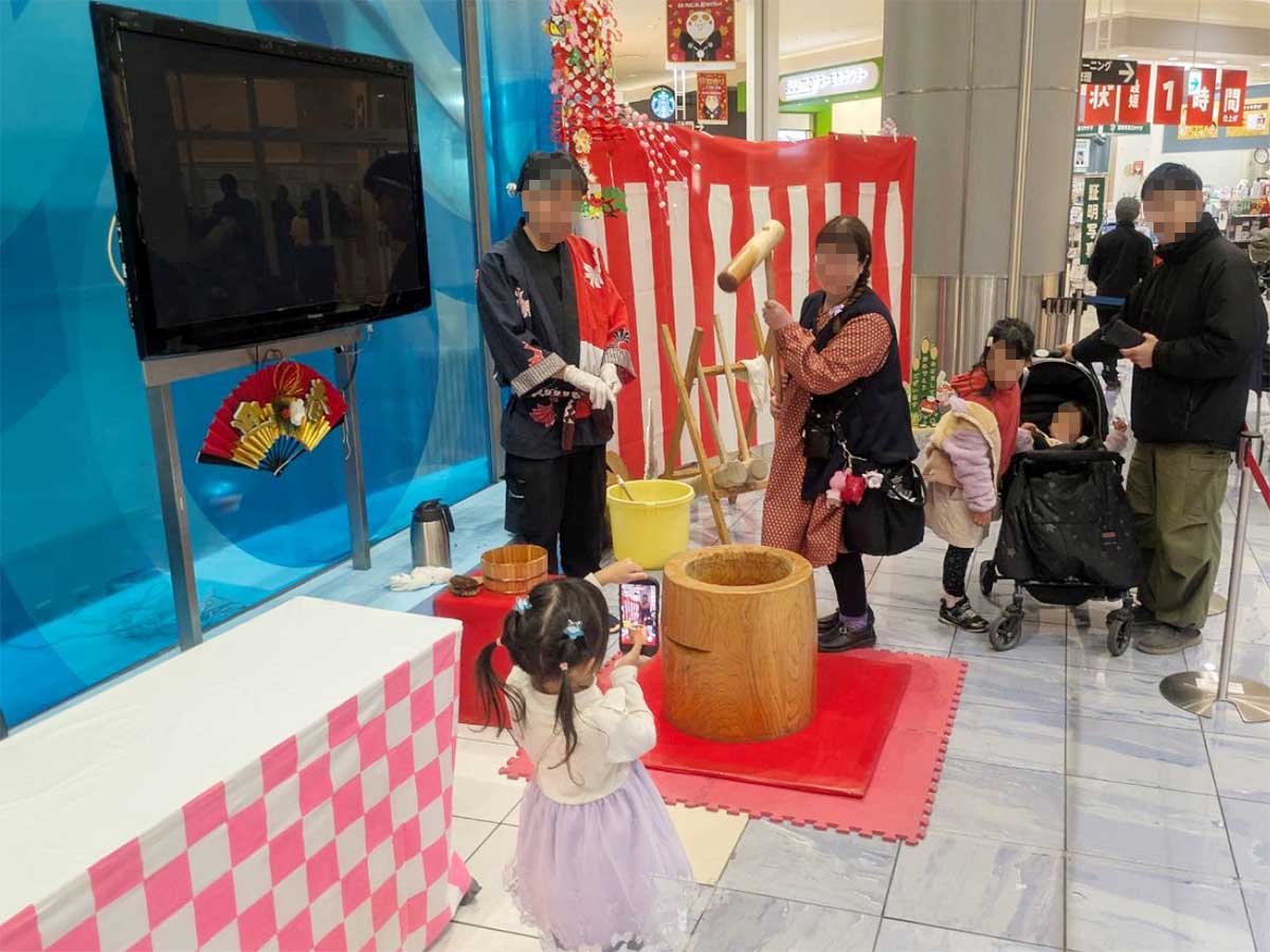 1月3日は神奈川県にあるイオンモール大和店では同じく餅つきのパフォーマンスに、子供達の餅つき体験で楽しいイベントになりました♪