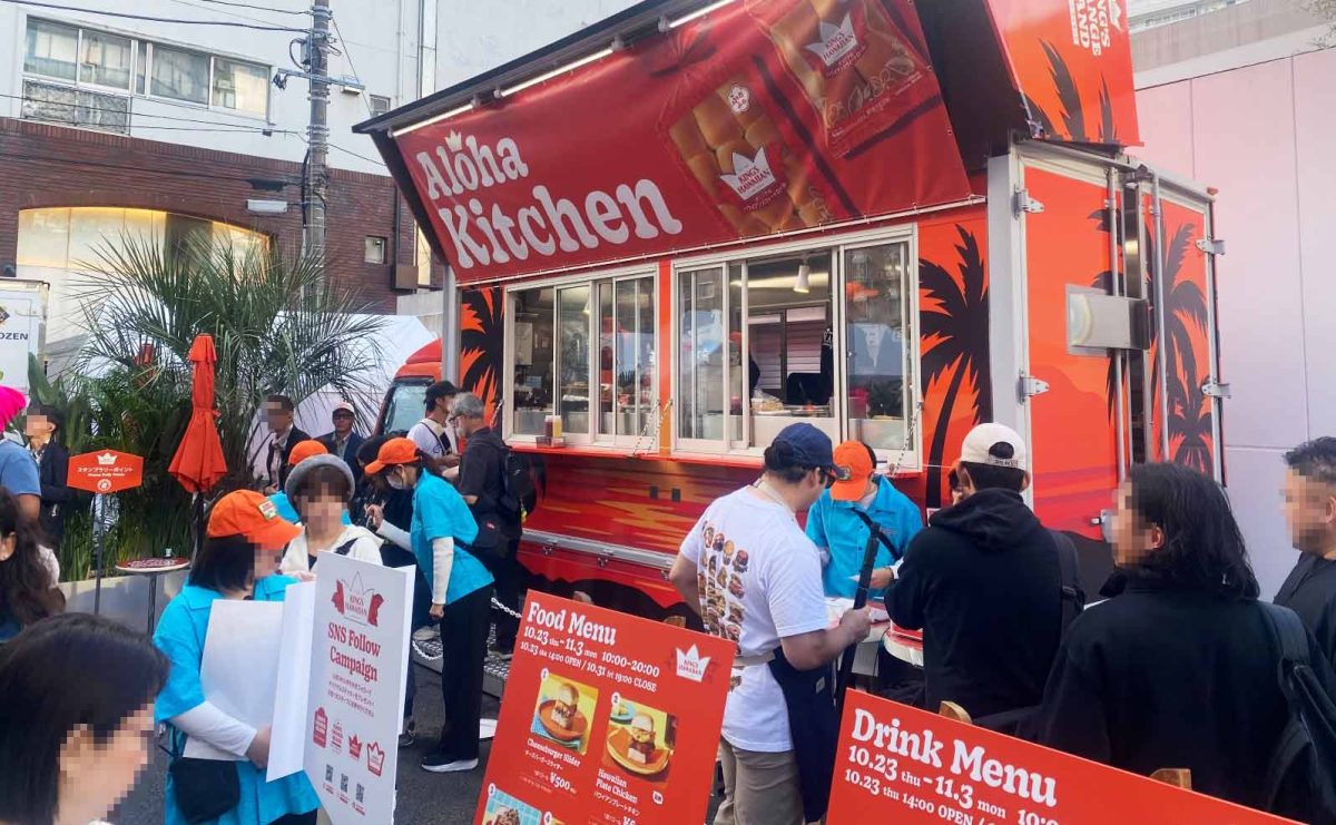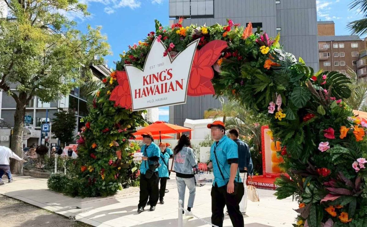 会場は表参道の一等地にテーマパークの様な仕様でOPENし、フォトスポットやスタンプラリー、室内ではキングスハワイアンのヒストリーの映像が流れる中、試食を配布したりと盛りだくさんなイベントとなりました。