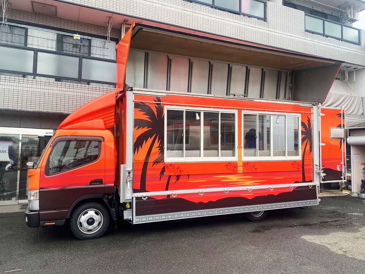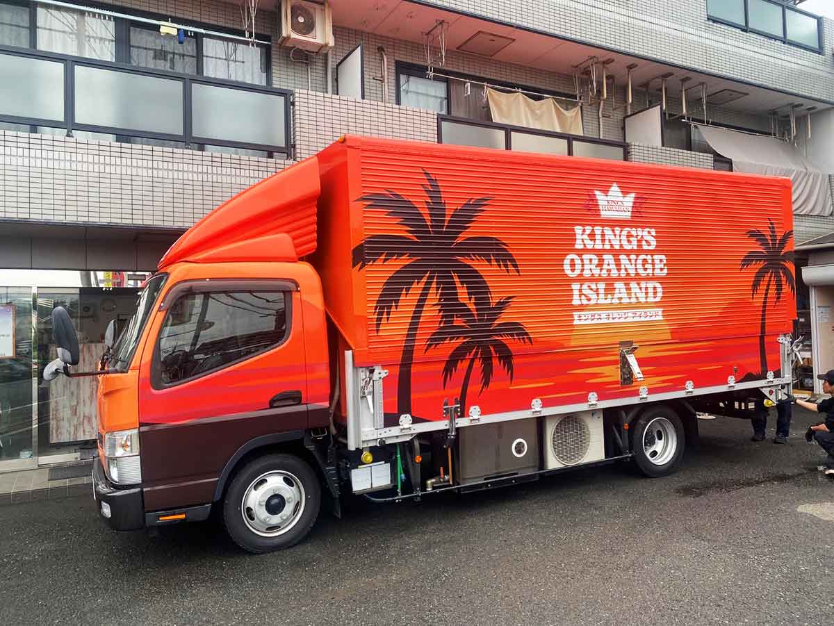 イベントのタイトルでもあり、キングスハワイアンのカラーでもあるORANGEが溢れる会場にキッチンカーウイング3号がオレンジにフルラッピングされ、存在感ある車両で登場しました♪