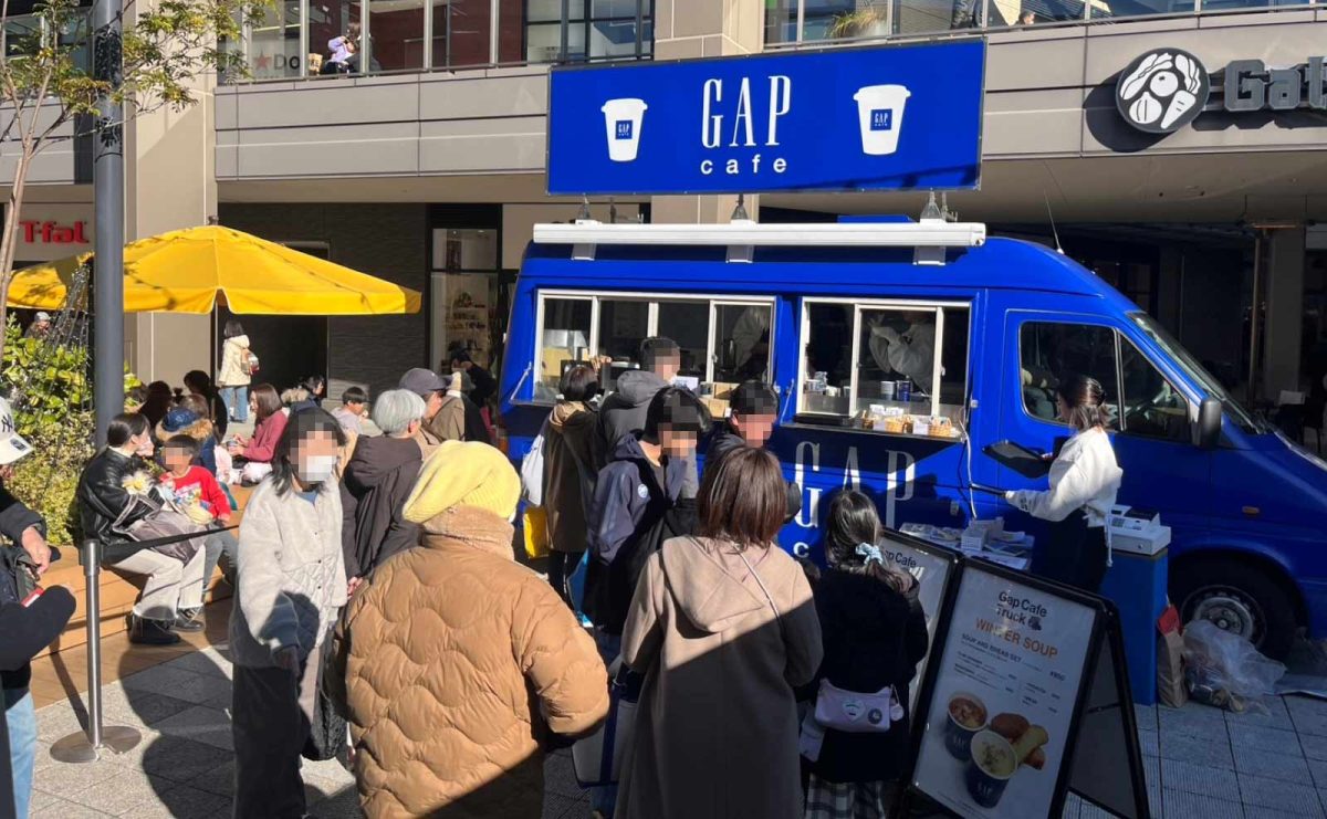 キッチンカーではGap Cafeオリジナルのブレンドコーヒーや紅茶などのドリンクメニューとキッチンカー特別メニューとして、クラムチャウダーとミネストローネが販売されました♪