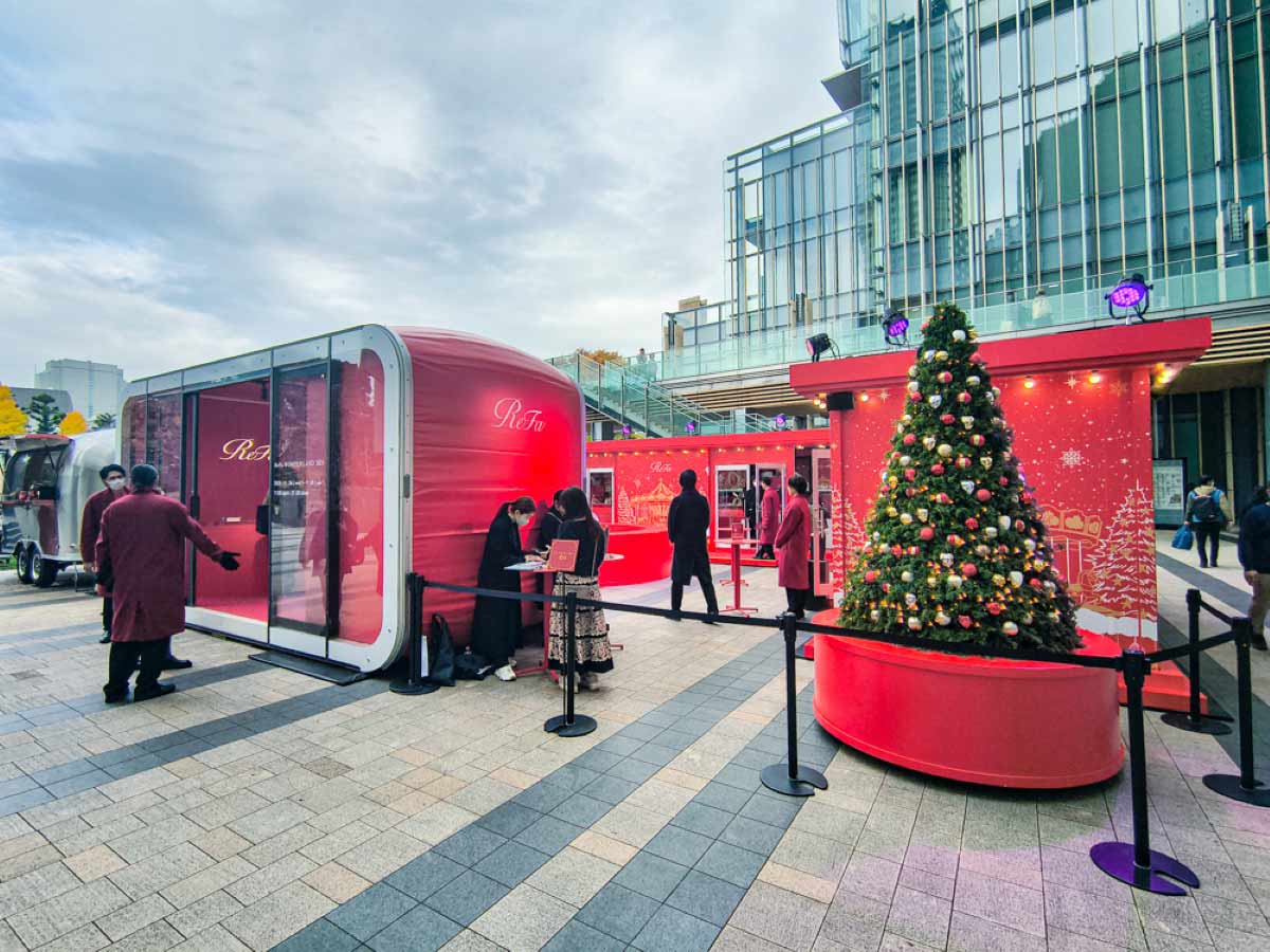 今大人気の美容機器ブランドの『Refa』のPOPUPで真っ赤なクリスマスをイメージとした会場に、シルバーの近未来的なフォルムのキッチントレーラーTJ-200がとてもマッチしていて素敵でした♪